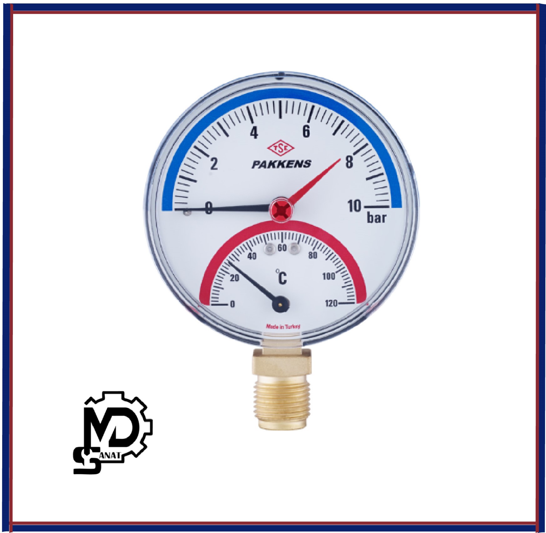خانه تجهیزات کنترل و اندازه‌گیری ترمومترمانومتر پکنز PAKKENS صفحه 10 سانت عمودی 10بار TE100