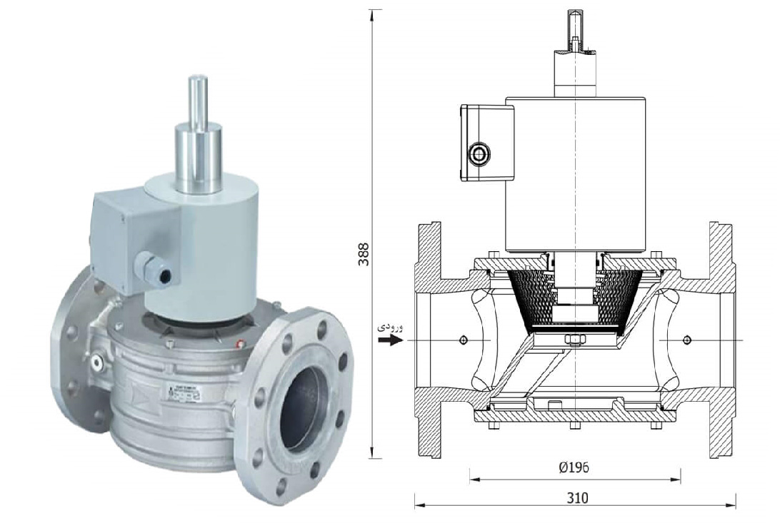 مشخصات فنی شیر برقی تک ضرب گاز 3 اینچ فلنجی دانگز
